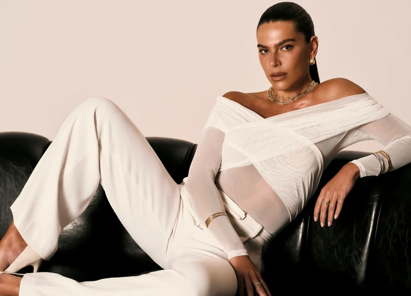 Mari Goldfarb estrela nova campanha da Morana que traz acessórios com correntaria como destaque no site do Farol da Bahia.